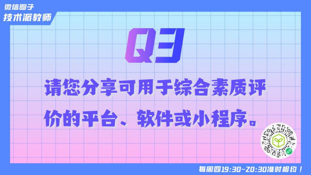 Q3:将技术手段与综合素质评价结合,能充分挖掘教育数据的价值,助力学生成长记录,推动学生综合素质评价的实施。请您分享可用于综合素质评价的平台、软件或小程序。