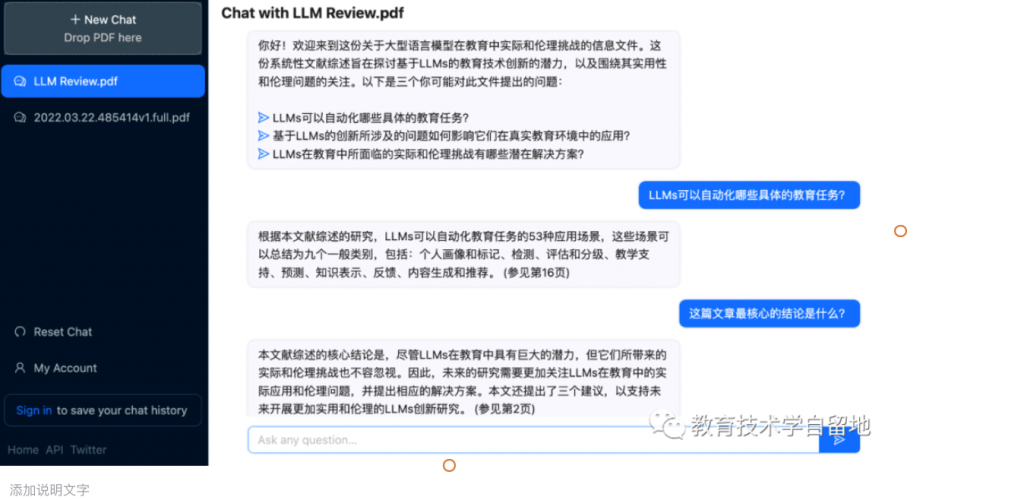 它就像ChatGPT一样,但是,聊天的内容仅限于针对用户上传的研究论文。