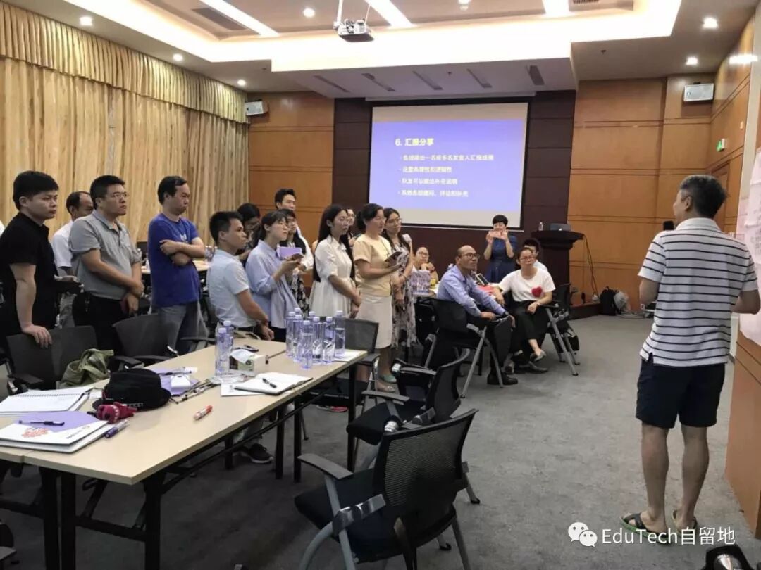 在我主持的工作坊模块,我首先组织了分组,接着结合我自己的理解和认识,分享了当前国内中小学创客教育面临的困难和挑战,之后,通过一个框架游戏,组织所有人对中小学创客课程设计与开发相关的四个问题进行了深度研讨。