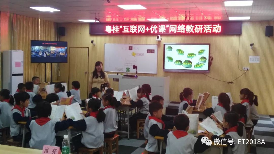 昨天,在观摩了4节粤桂同一堂课的基础,结合我之前的理解和认识,我认为,粤桂同一堂课是试图通过直播+互动+共享的双师模式,让粤桂两地的学校以及两校相关联的教学点,借助互联网直播同步教学的技术,在一端;线上名师授课(远端),另外一端线下教师辅导(现场),各自的教学段远程参与的教学形式。