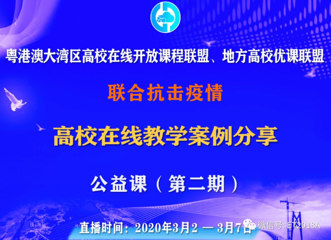 据介绍,这个系列公益课程是由粤港澳大湾区高校在线开放课程联盟会同地方高校优课联盟(UOOC)共同发起组织,联合抗击疫情,以《高校在线教学案例分享》为题的系列公益课。这是第二期(3月2日—3月7日)的最后一场。